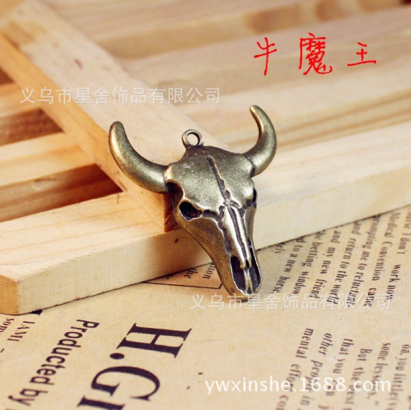 Penjualan langsung dari pabrik aksesoris perhiasan zakka 31*28MM Bull Demon King aksesoris perhiasan kepala banteng liontin kalung gaya pacar.