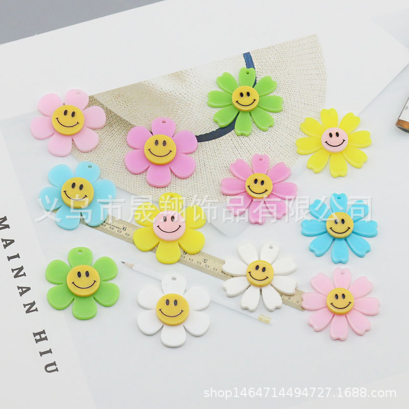 Anting-anting rantai bunga matahari, Aksesori Perhiasan DIY liontin wajah tersenyum bunga 8 kelopak akrilik gaya Korea 30mm
