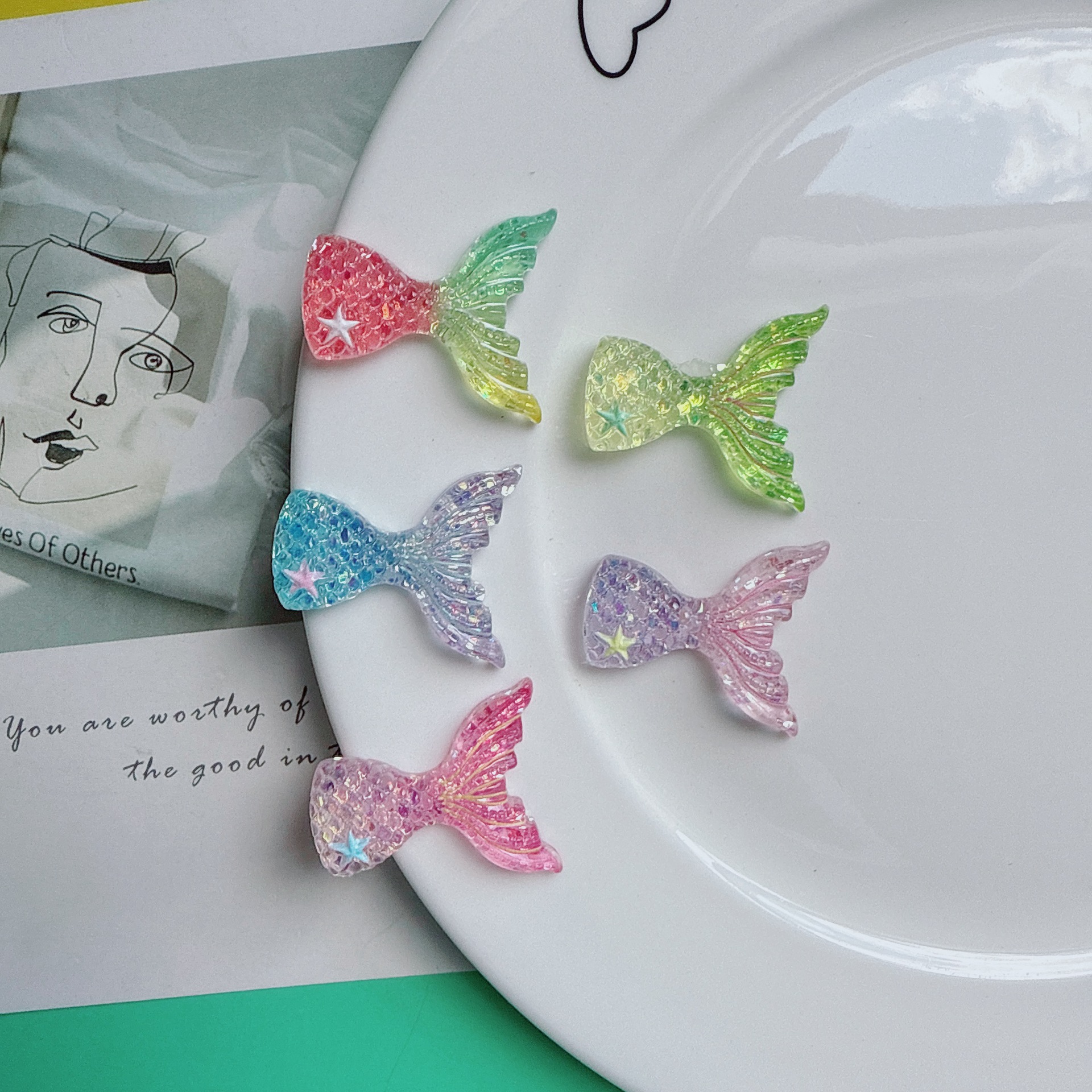 Diskon besar mainan perhiasan DIY seri putri duyung kartun klasik bahan buatan tangan berkilau dekoratif