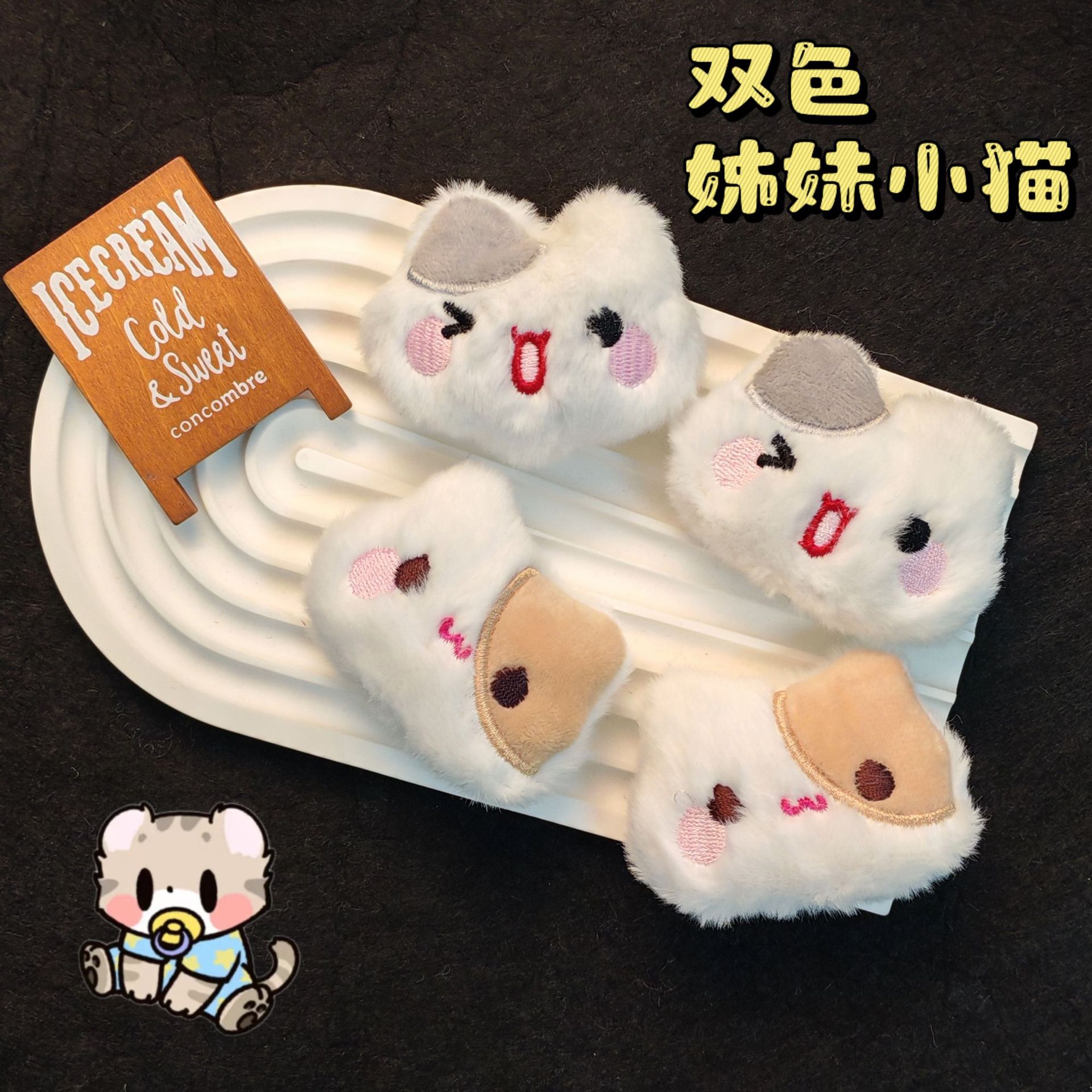 Bros boneka kucing lembut kartun baru aksesori tas DIY anak kucing ekspresi lucu dan topi aksesori pakaian