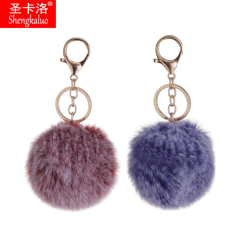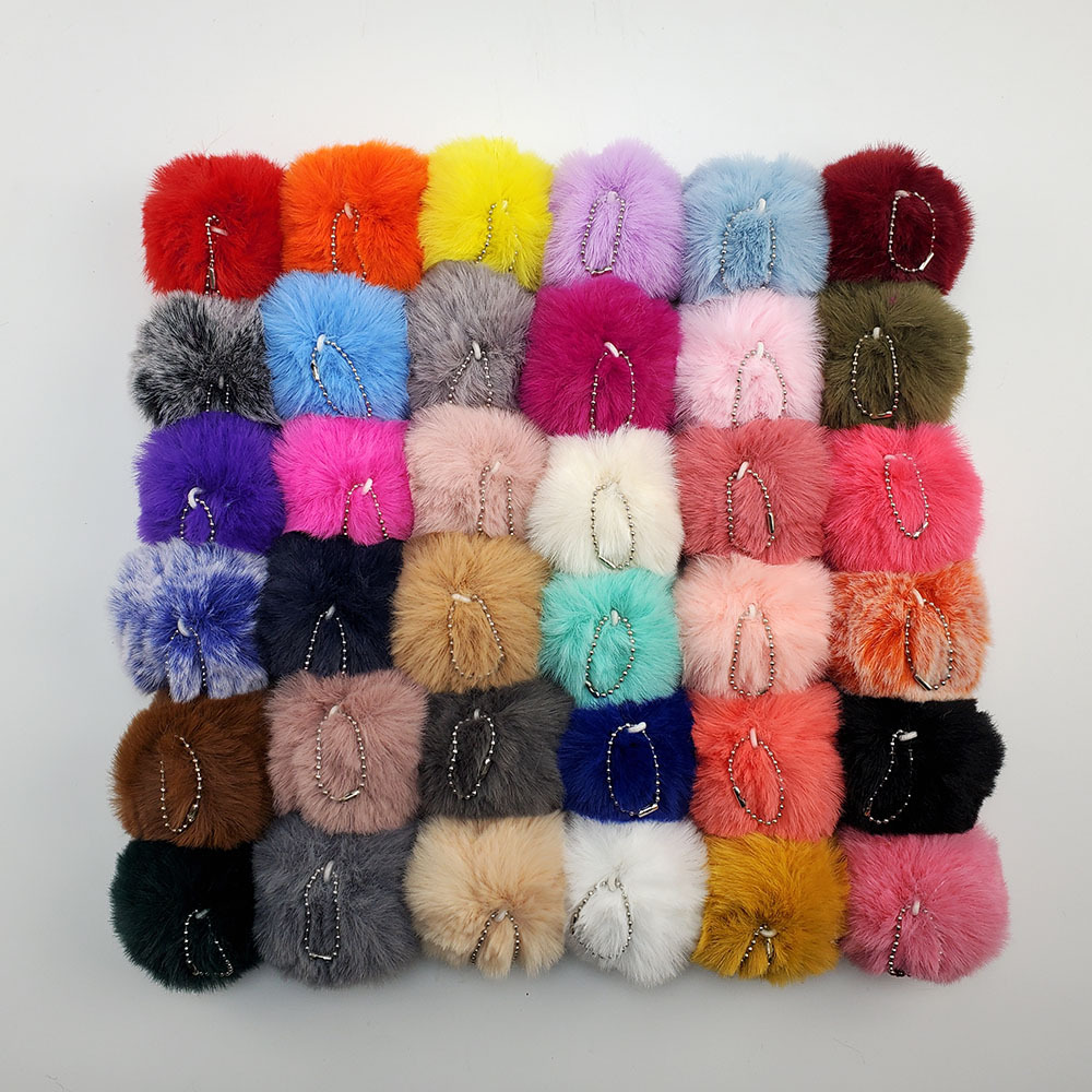 Cincin kunci flanel kelinci Rex imitasi ujung celup gantungan kunci bola bulu warna Frost Aksesori rantai liontin tali kepala grosir