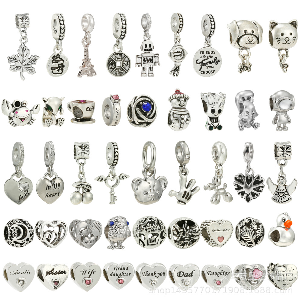 Liontin manik-manik lubang besar logam campuran perak hewan unicorn dan hati manik-manik logam jimat Aksesori DIY grosir