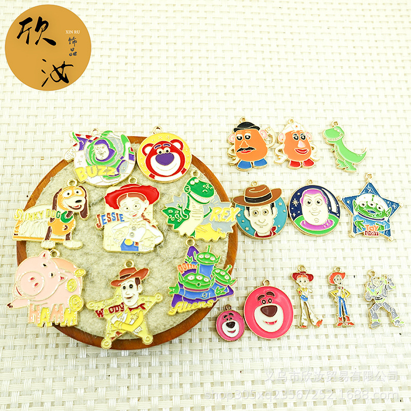 Seri Toy Story Aksesori Perhiasan animasi kartun DIY liontin minyak dripping liontin Denim gantung tunggal beruang stroberi