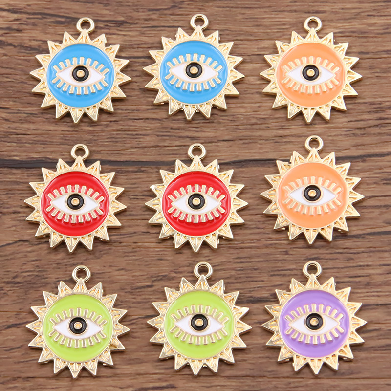 Aksesori perhiasan logam campuran DIY, 5 warna 19*21mm, aksesori ponsel liontin minyak mata Turki bulat