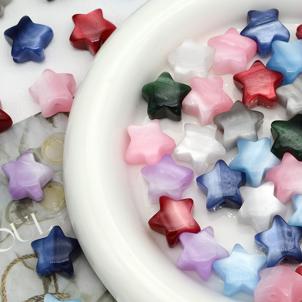 Aksesori akrilik resin DIY acak 5 warna, ornamen liontin beruang bulat bintang lima titik cinta