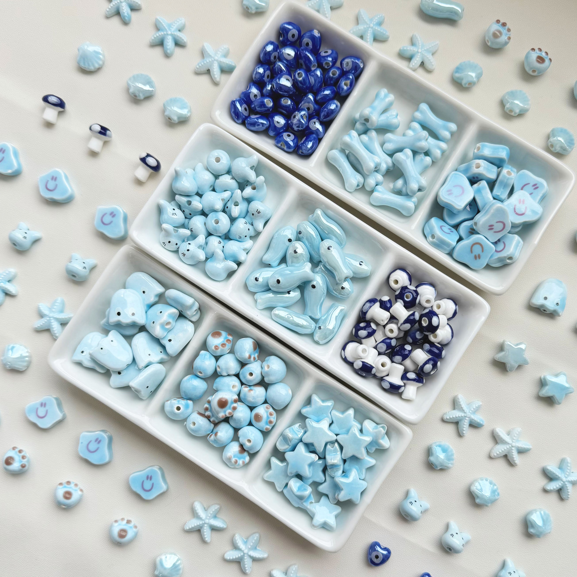 Manik-manik keramik bentuk khusus biru diy Aksesori bintang lima runcing cakar kucing manik-manik longgar gelang manik-manik bahan pakaian rantai ponsel
