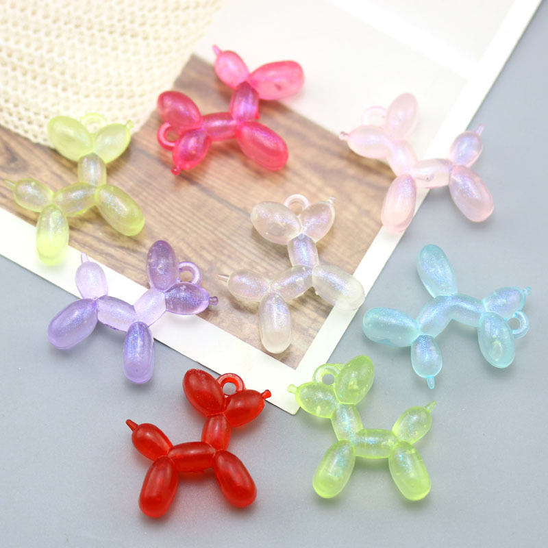 Aksesori perhiasan DIY liontin gantungan kunci boneka stereo anjing balon bercahaya mutiara warna-warni akrilik