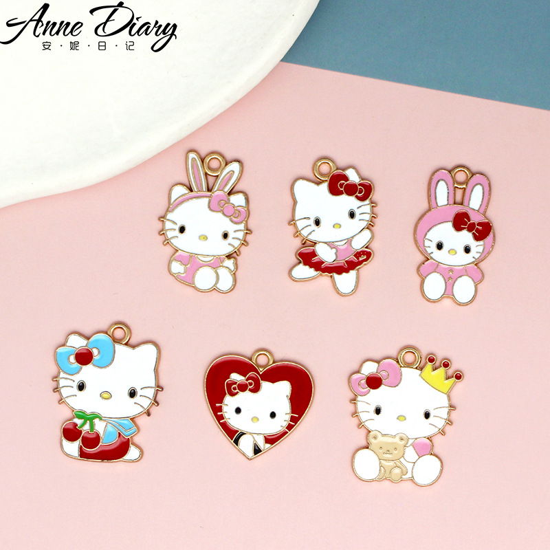 Boneka kartun DIY Aksesori logam campuran merah muda KT kalung kucing liontin gantungan kunci liontin ornamen bahan