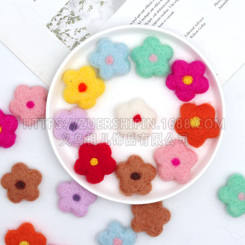 Wol bulu Kempa selesai buatan tangan bunga kecil datar ukuran kecil lima kelopak aksesoris rambut DIY