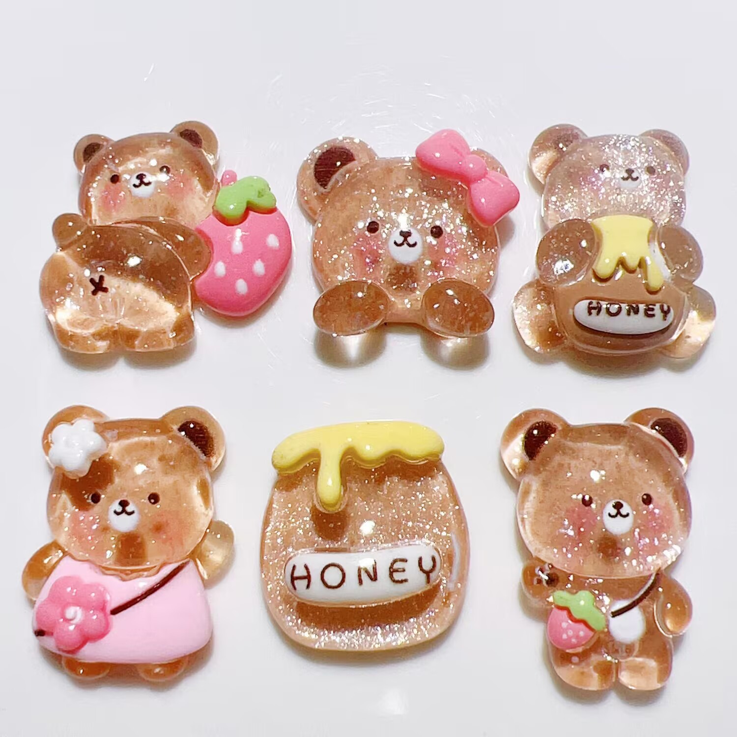 Aksesoris Resin Beruang Kecil Transparan Jepit Rambut Aksesoris Lem Krim DIY Casing Ponsel Stiker Mobil Listrik