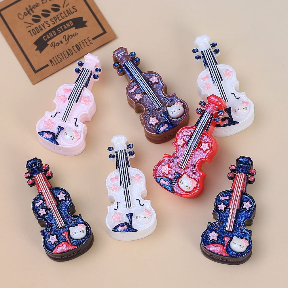 Kreatif Lucu Meow Meow Gitar Kartun Buatan Tangan DIY Jepit Rambut Buatan Tangan Aksesori Lem Krim Aksesoris Resin Grosir