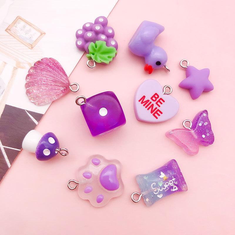 Liontin resin ungu cangkang anggur bola daging kucing liontin bintang lima-sudut gantungan kunci liontin DIY Aksesori perhiasan