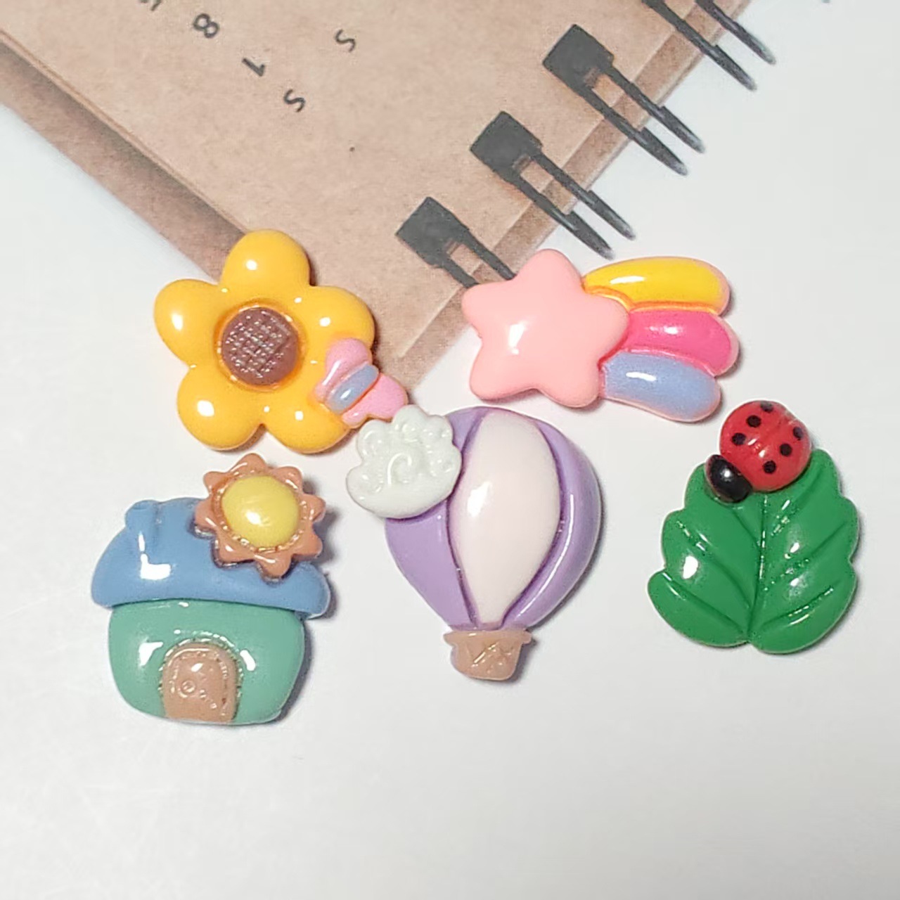 Happy Life Balon Udara Panas Warna-Warni Meteor Cream Set Aksesoris Resin Kreatif Kartun Lucu Grosir