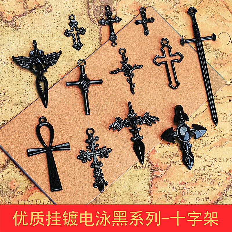 Bahan buatan tangan antik elektroforesis liontin hitam sayap silang Aksesori Gelap Pedang Panjang DIY aksesori perhiasan liontin