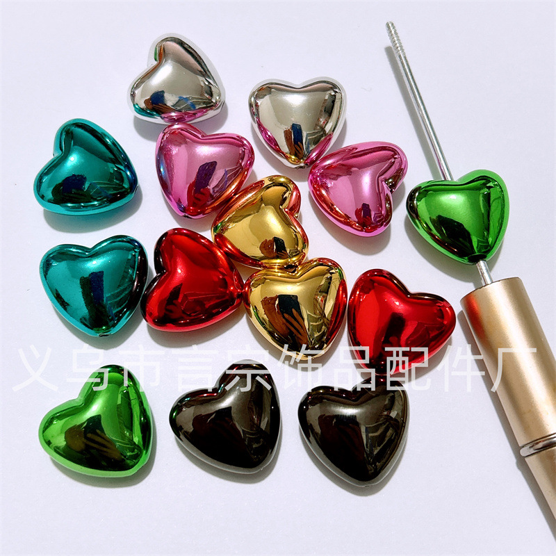 Rantai kunci manik-manik ponsel DIY, lubang vertikal logam akrilik Natal cinta manik-manik Aksesori pena manik-manik gantung mobil