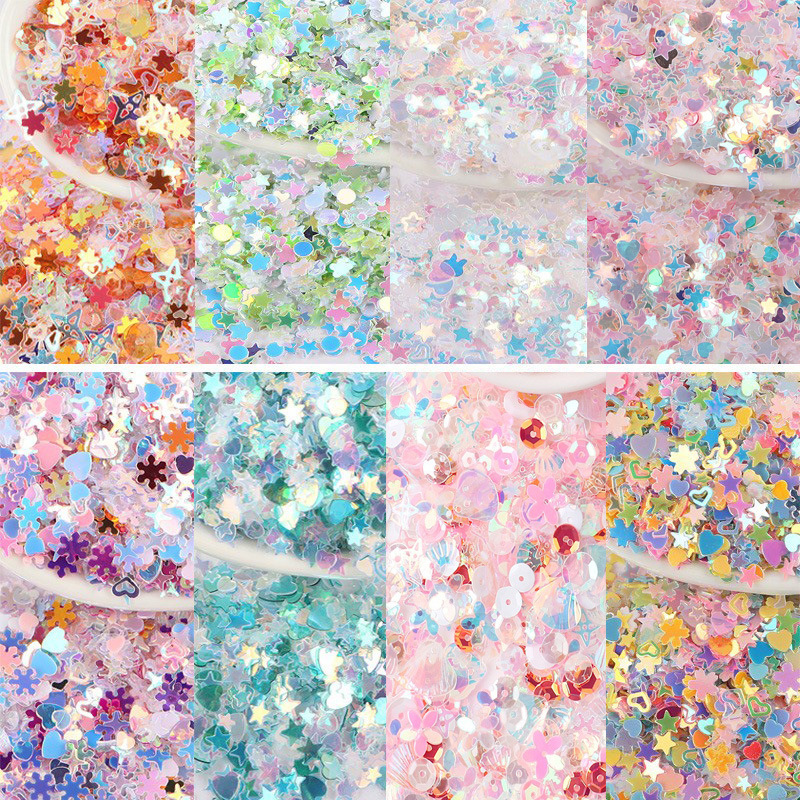 Campuran acak catatan warna-warni kupu-kupu bulan bintang Glitter dekorasi kuku payet aksesori pakaian grosir