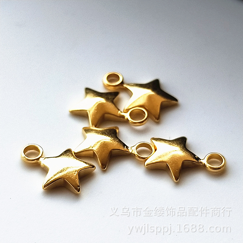 Aksesoris DIY 6mm warna emas perlindungan warna emas perlindungan gelang anting kalung tembaga murni tiga dimensi bintang lima runcing aksesoris A519