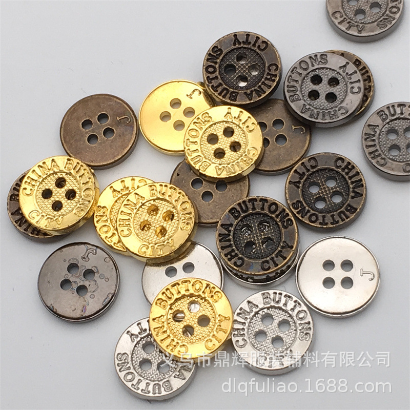 Grosir huruf laser kancing empat mata plastik ABS elektroplating tepi lebar kancing empat mata kancing pakaian logam imitasi