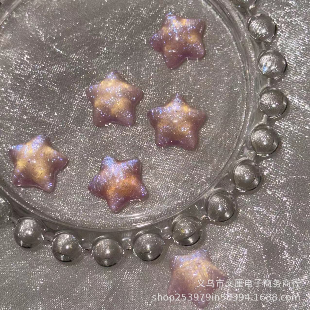Fine flash pink cahaya air rasa bintang berujung lima bercahaya diy buatan tangan desain perifer dimensi Jepang pasir apung hairpin bahan