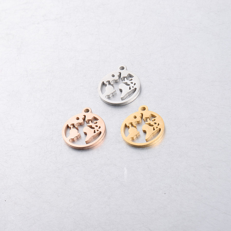 Aksesori Perhiasan peta dunia penjualan laris lintas batas liontin DIY baja titanium cermin liontin bumi berongga bulat