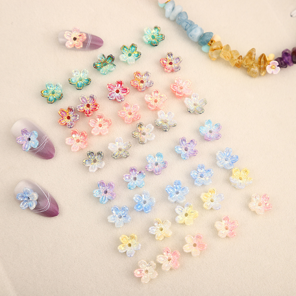 Aksesoris Perhiasan Bunga Persik Berlubang Elektroplated Aksesoris Resin DIY Bahan Anting Gelang Dekorasi Bunga Gradien Warna Kombinasi