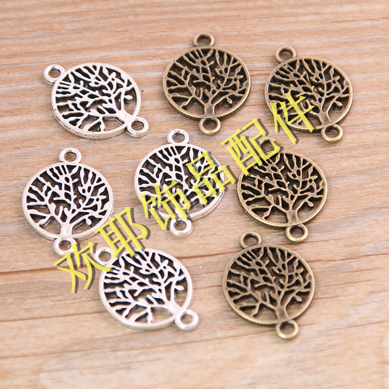 Aksesori perhiasan logam campuran DIY, 2 warna 16*23mm konektor pohon kehidupan liontin tanaman aksesoris gelang