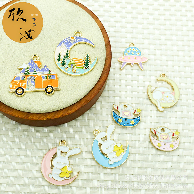 Aksesori perhiasan kartun kucing bulan RV lansekap gelang alien UFO liontin bando kelinci