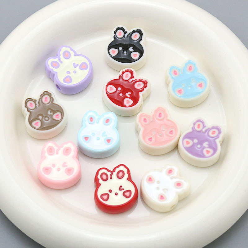 DIY aksesoris perhiasan akrilik drop minyak lubang lurus kepala kelinci manik-manik longgar Ponsel rantai mobil bahan gantung manik-manik