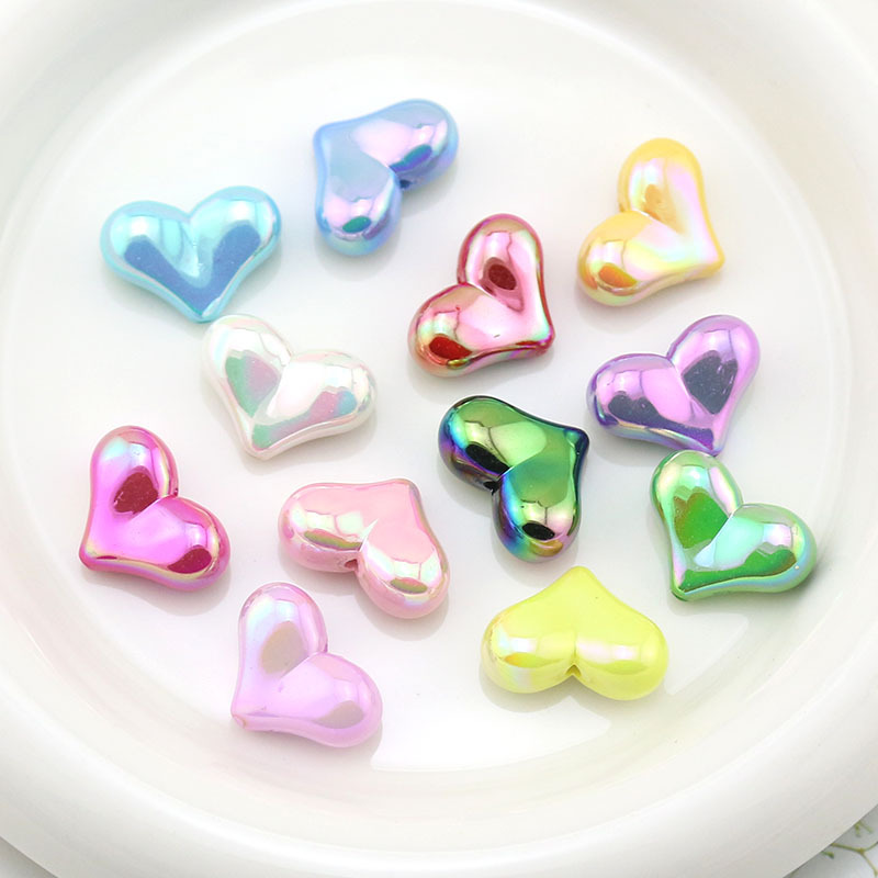 DIY aksesori perhiasan akrilik warna AB lubang lurus hati persik manik-manik cinta buatan rumah rantai ponsel bahan dekorasi gantung mobil