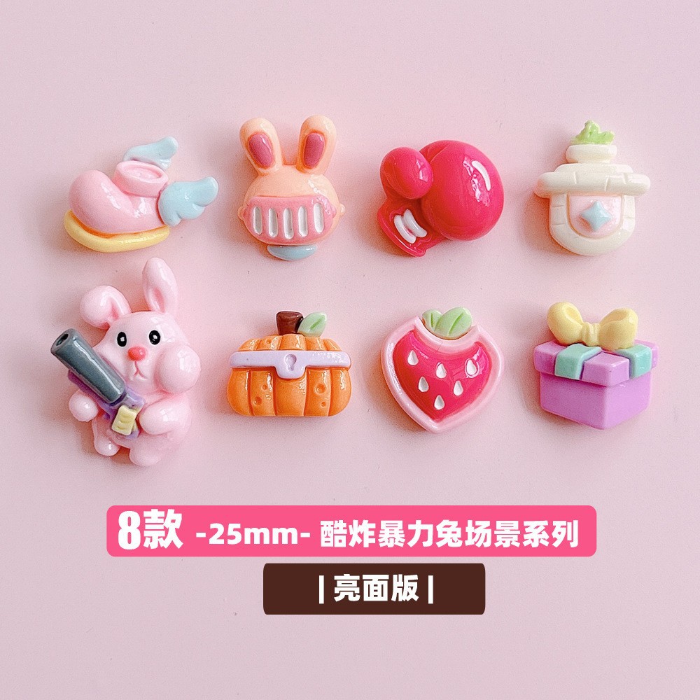 XN Miss cool ledakan kekerasan kelinci adegan kartun diy resin perhiasan aksesori ponsel cangkang jepit rambut krim ornamen lem