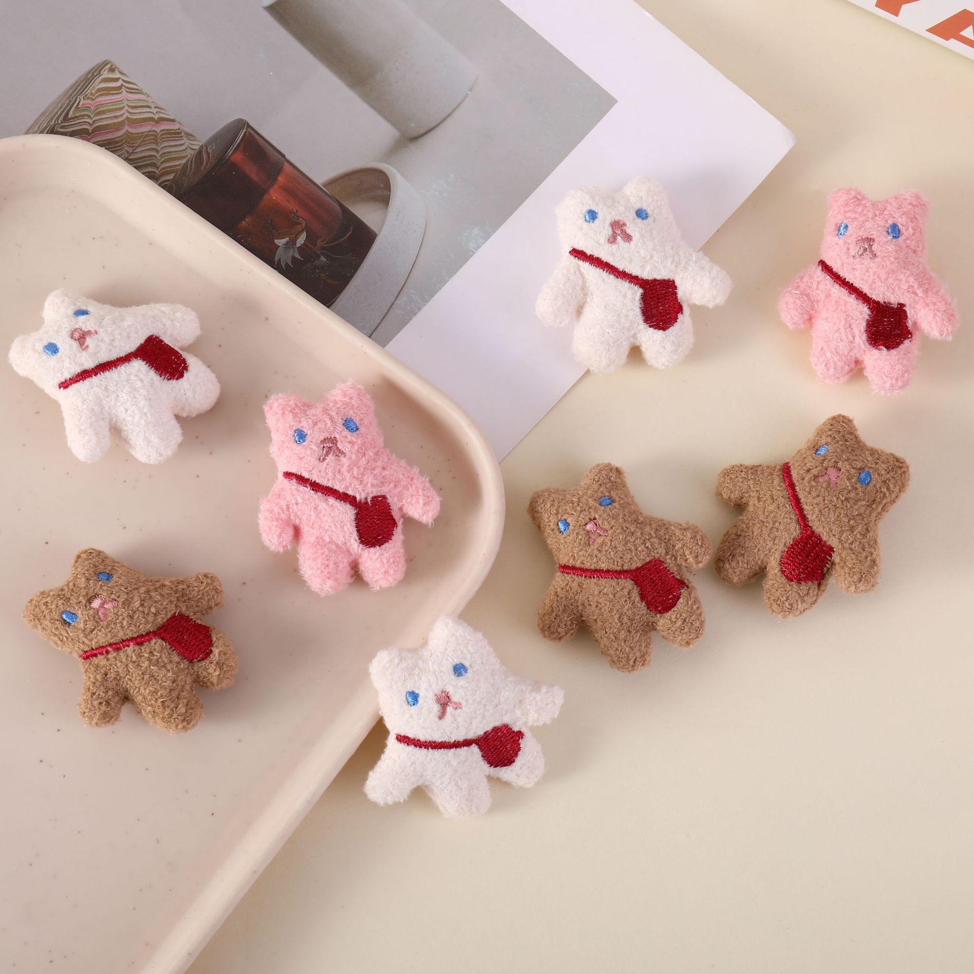 Kartun lucu mewah bros bordir gantungan kunci liontin kain boneka buatan tangan DIY jepit rambut bahan aksesoris