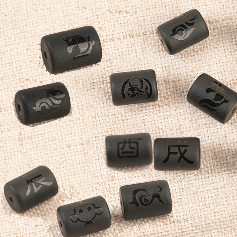 Pabrik Perdagangan Luar Negeri Lintas Batas Diy Aksesoris Batu Hitam Dua belas Tanda Zodiak Ember Manik Manik Setengah Jadi Manik Manik Buatan Tangan Aksesoris