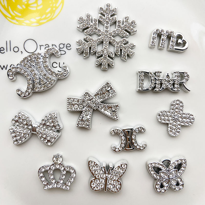 Aksesoris Hiasan Huruf Kepingan Salju Berlian Perak Casing Ponsel Hiasan Bahan Lubang Sepatu Bunga Sepatu
