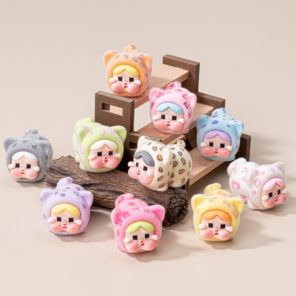 创意植绒豹纹小猫哭哭 diy饰品树脂配件趣味盲盒萌粒学生桌面摆件
