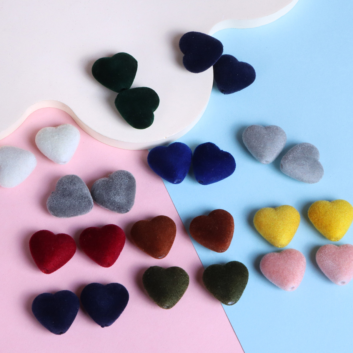 Jepit rambut bahan manik-manik lurus 18mm, Aksesori dekorasi rantai ponsel, anting-anting bahan berbulu hati cinta, lubang lurus, aksesori dekorasi