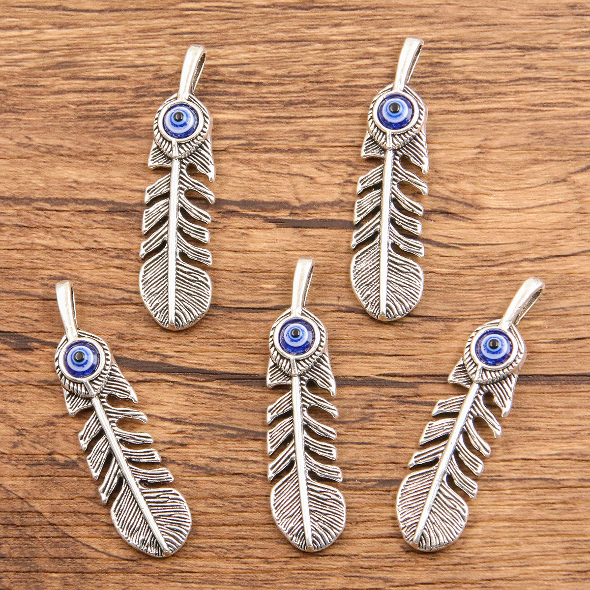 12*48mm DIY seng logam campuran Aksesori berongga hewan liontin bulu biru mata setan Patch pesona