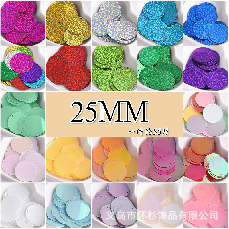 25mm manik-manik payet bulat warna ajaib lubang jahit tangan DIY aksesori perhiasan aksesori pakaian Aksesori wafer renda