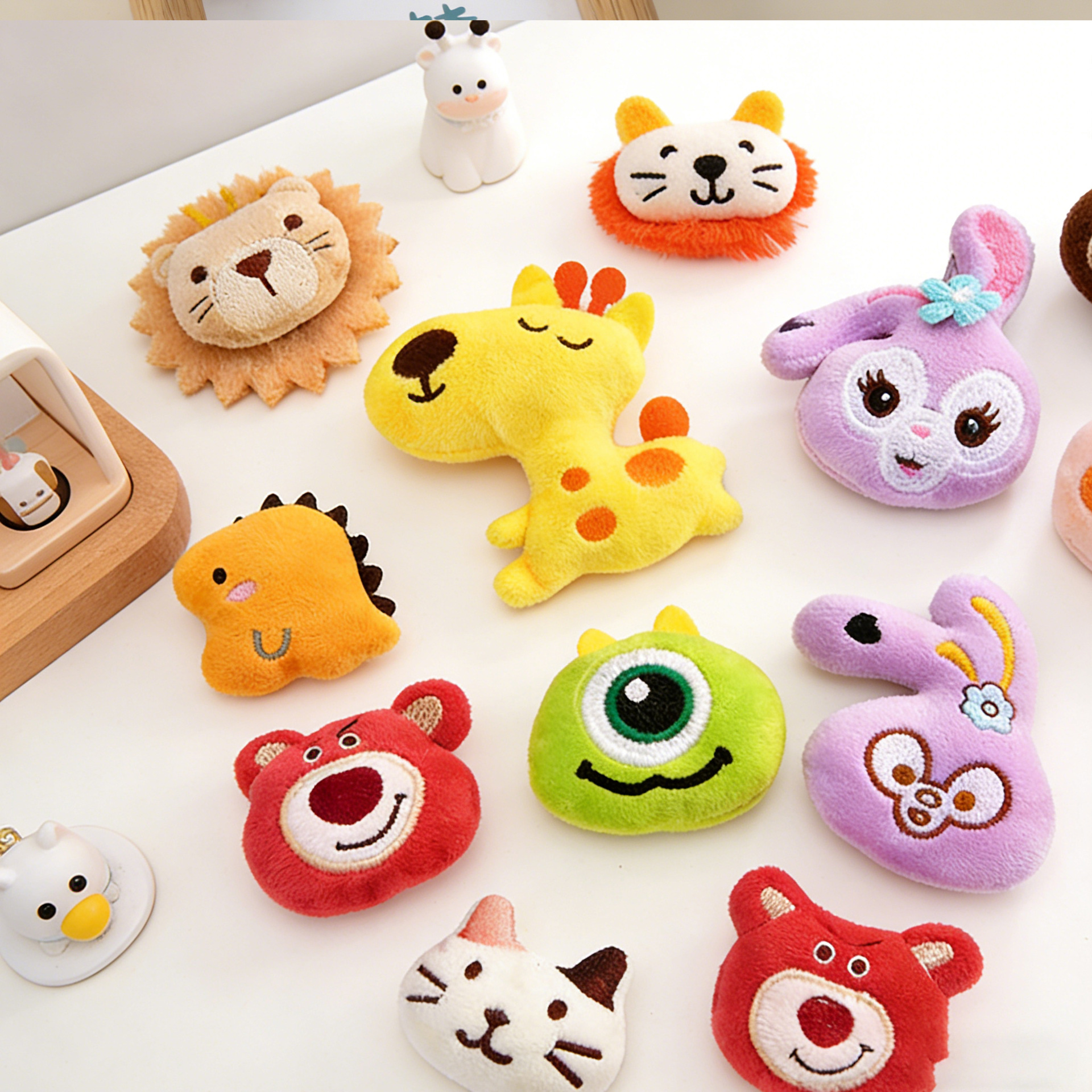 Kartun kepala hewan kapas diisi pakaian anak-anak, topi, sepatu dan aksesoris jepit rambut aksesori DIY bahan bros mewah grosir