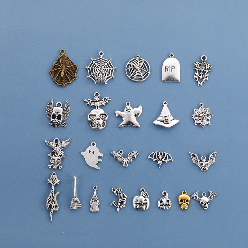 Diy Halloween paduan lucu kepala hantu laba-laba web kelelawar liontin rambut aksesori gelang kalung aksesoris perhiasan