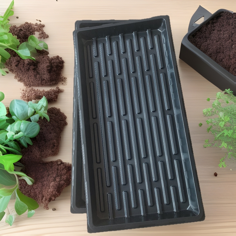 Pet piring kecambah piring pembibitan persegi panjang dengan daun piring datar multi-daging piring plastik persegi hitam kecil dengan air