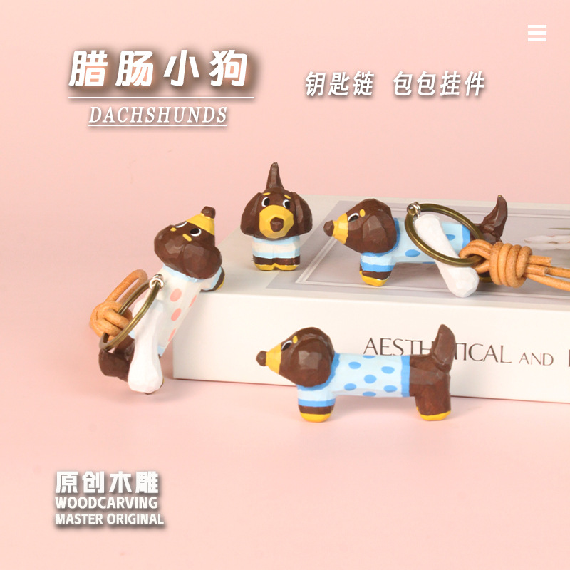 Liontin Anjing Dachshund Ukiran Kayu Buatan Tangan Liontin Lucu Kartun Kerajinan Kayu Anjing Lintas Batas Hewan Ukir Kayu