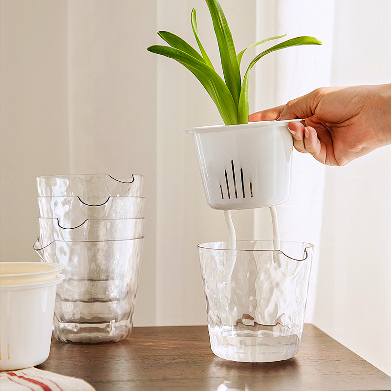 Pot Bunga Penyerap Air Transparan Tinggi Pot Bunga Malas Pot Air Balkon Pot Bunga Resin Plastik Tanpa Penyiraman