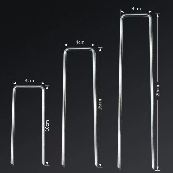 Paku tanah untuk kain pengendali gulma, paku berkebun berbentuk U, paku rumput kawat baja, alat pengikat mulsa galvanis, khusus untuk kain pengendali gulma.