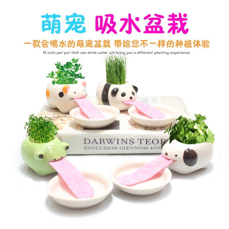 Boneka rumput mini, DIY kreatif menyerap pot hewan peliharaan lucu seni hadiah siswa kantor pot tanaman mini