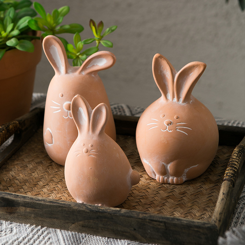 Dekorasi tanah liat merah lucu kartun hewan kecil kelinci anak kucing berkebun taman kerajinan balkon taman