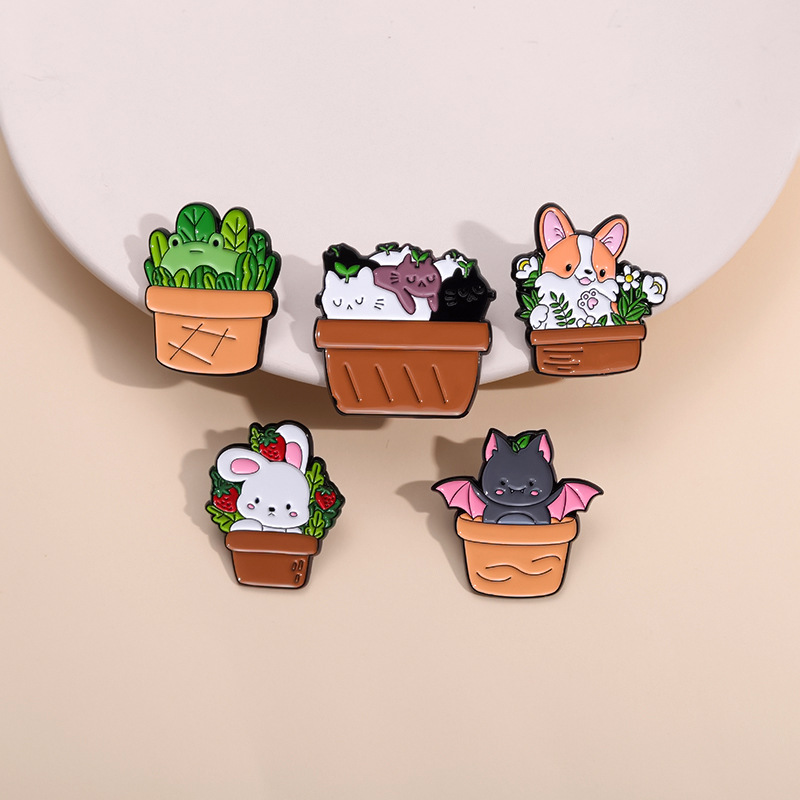 Bros pot hijau hewan kecil lucu lencana logam baru kucing anjing Corgi hadiah indah korsase
