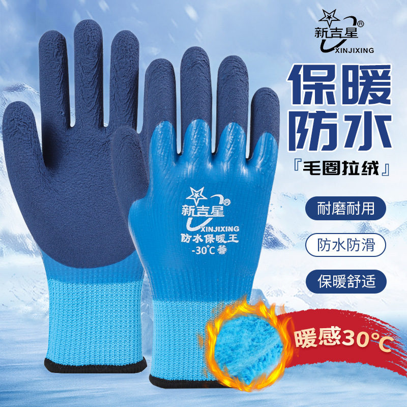 Sarung Tangan Perlindungan Tenaga Kerja Ekstra Bulu Ekstra Tebal Tahan Hangat Karet Tahan Aus Musim Dingin Tahan Air Anti Slip Outdoor Kering Kering Storage Penuh Perekat Kerja