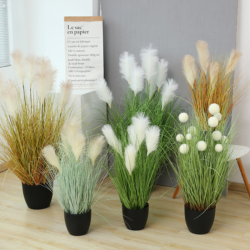 Reed buatan bunga hijau tanaman bonsai grosir dekorasi lantai tanaman buatan Nordik ekor anjing rumput bonsai