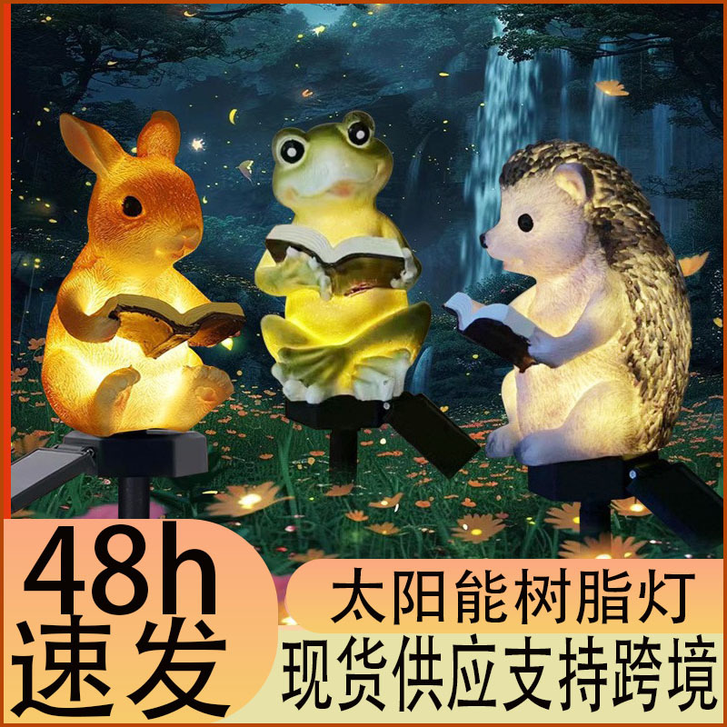 Dekorasi Kecil Taman Lampu Surya Resin Kerajinan Katak Kelinci Landak Buku Kreatif Taman Hewan