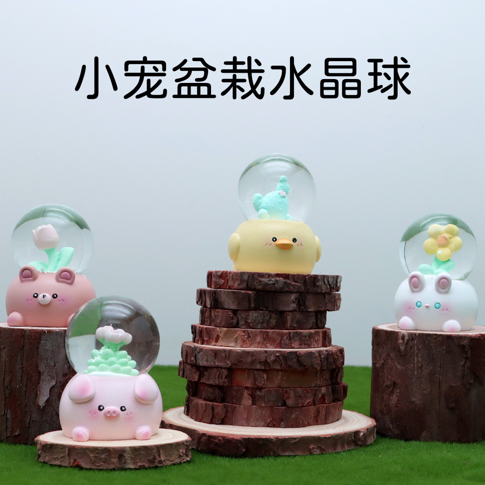 Bola kristal pot hewan peliharaan kecil kartun lucu No. 45 dekorasi bercahaya mini hadiah Hari anak-anak hadiah ulang tahun anak-anak